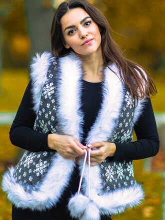 Krásná dámská vesta z ovčí vlny se vzorem 01 - šedá