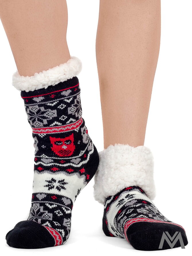 Tradiční, dámské ponožky z kvalitního materiálu, které navodí tu pravou vánoční atmosféru. Svátky jsou časem štěstí, lásky a rodinné pohody, proto jsou hřejivé ponožky s vánočním vzorem v kombinaci černé a červené tým správným způsobem jak udržet své blízké v teple. Ponožky jsou navíc protiskluzové a postarají se tak i o bezpečnost při pohybu po kluzkém povrchu.