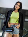 Modelka LENKA měří 164 cm a má na sobě velikost XXS/XS.