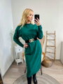 Šaty v tmavě zelené barvě jsou ideální volbou na procházku v teplém i chladnějším počasí. Tyto šaty mají delší střih s dlouhými rukávy. Kousek můžete snadno kombinovat s páskem a koženými botami. Pásek není součástí šatů. Velikost je univerzální a bude vyhovovat ženám, které nosí velikost XS, S nebo M.