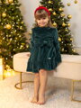 Stylový komplet šatů pro matku a dceru v krásné smaragdové barvě. Komplet se skládá ze šatů pro ženu, které mají dlouhé rukávy zakončené gumičkou. V pase je stahovací guma, která se přizpůsobí vaší postavě. Dámské šaty jsou bez výstřihu vhodné pro slavnostnější příležitosti. Dětské šaty jsou stejného střihu se speciální mašlí v pase. Obojí šaty mají áčkovou sukni. Zpříjemněte si společné chvíle s vaším děťátkem našimi šaty od slovenské značky VERSABE.