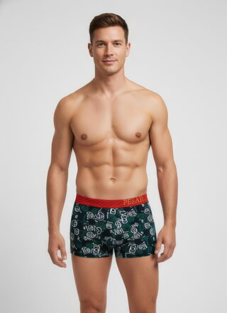 Objev pohodlí, které si zamiluješ! Pánské boxerky Pesail s červeným elastickým pasem a originálním potiskem v zeleno-bílých tónech nabízejí ideální kombinaci komfortu, kvality a stylu.