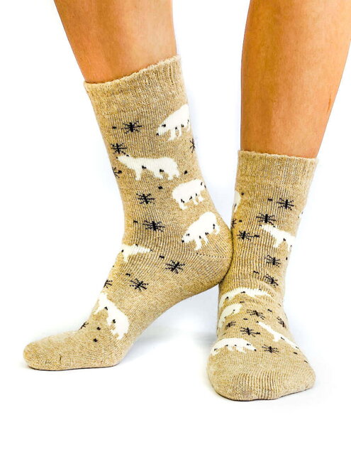 (10956)Veselé dámské ponožky s ledním medvědem na krémovém podkladu.